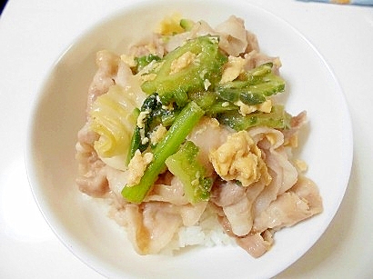残ったキャベツと小松菜の卵炒めで 豚丼 レシピ 作り方 By V るん 0394 楽天レシピ
